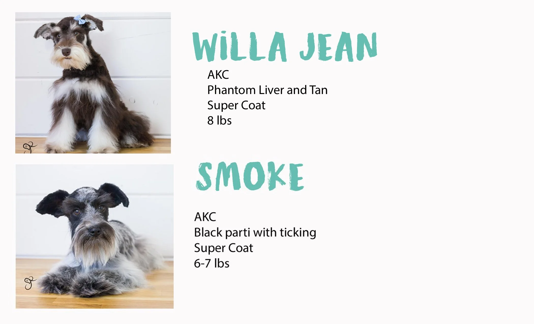 All our schnauzers come with: a 5 year health guarantee, AKC Papers, Microchip, crate, collar, leash, brush, toy, blanket, puppy food, AKC Puppy Protection Package ($200 value), and lots of love! We also take care of the hassle of registering your puppy to you as well as their microchip.