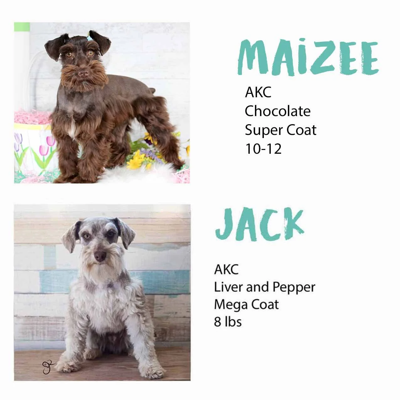 All our schnauzers come with: a 5 year health guarantee, AKC Papers, Microchip, crate, collar, leash, brush, toy, blanket, puppy food, AKC Puppy Protection Package ($200 value), and lots of love! We also take care of the hassle of registering your puppy to you as well as their microchip.