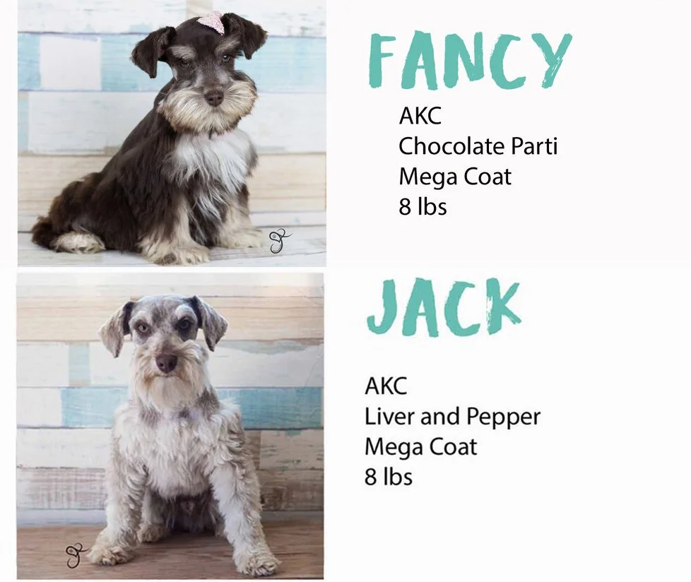 All our schnauzers come with: a 5 year health guarantee, AKC Papers, Microchip, crate, collar, leash, brush, toy, blanket, puppy food, AKC Puppy Protection Package ($200 value), and lots of love! We also take care of the hassle of registering your puppy to you as well as their microchip.